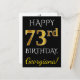 Black, Faux Gold 73rd Birthday + Custom Name Postcard