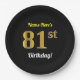 Black, Faux Gold 81st Birthday + Custom Name Paper Plate