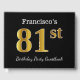 Black, Faux Gold 81st Birthday Party + Custom Name Guest Book