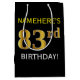 Black, Faux Gold 83rd Birthday + Custom Name Medium Gift Bag