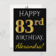 Black, Faux Gold 83rd Birthday + Custom Name Postcard