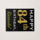 Black, Faux Gold 84th Birthday + Custom Name Jigsaw Puzzle