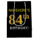Black, Faux Gold 84th Birthday + Custom Name Medium Gift Bag