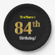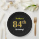 Black, Faux Gold 84th Birthday + Custom Name Paper Plate