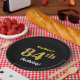 This simple, customised, birthday-themed paper plate design features a customisable message like "FirstName’s 84th Birthday!", where the name can be changed, and with the "84th" having a faux/imitation gold-like appearance. It also features a black coloured background. Paper plates like these could perhaps be used at a party being held to celebrate somebody’s eighty fourth birthday. [~Z0000143]