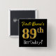 Black, Faux Gold 89th Birthday, With Custom Name 15 Cm Square Badge