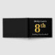 This guest book design features the ordinal number "8th" with a faux gold-like appearance. It also features a customised name, and a black coloured background. It could be used at a party for somebody celebrating their eighth birthday. [~Z0000054]