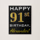 Black, Faux Gold 91st Birthday + Custom Name Jigsaw Puzzle
