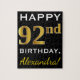 Black, Faux Gold 92nd Birthday + Custom Name Jigsaw Puzzle