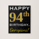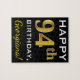 Black, Faux Gold 94th Birthday + Custom Name Jigsaw Puzzle