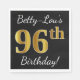 Black, Faux Gold 96th Birthday + Custom Name Napkin