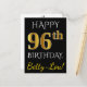 Black, Faux Gold 96th Birthday + Custom Name Postcard