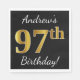 Black, Faux Gold 97th Birthday + Custom Name Napkin