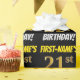 This wrapping paper design features a message like "FIRST-NAME’S 21st BIRTHDAY!", with the "21st" having a faux/imitation gold-like colour appearance, and with the name and "BIRTHDAY" in a fun, bold font. The name can be personalised, and the background is coloured black. Wrapping paper like this could perhaps be used when wrapping birthday gifts being given to somebody in celebration of their twenty first birthday. [~Z0000203]