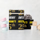 This wrapping paper design features a message like "FIRSTNAME’S 25th BIRTHDAY!", with the "25th" having a faux/imitation gold-like colour appearance, and with the name and "BIRTHDAY" in a fun, bold font. The name can be customised, and the background is coloured black. Wrapping paper like this could perhaps be used when wrapping birthday gifts being given to somebody in celebration of their twenty fifth birthday. [~Z0000203]