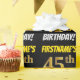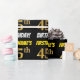 This wrapping paper design features a message like "FIRSTNAME’S 45th BIRTHDAY!", with the "45th" having a faux/imitation gold-like color appearance, and with the name and "BIRTHDAY" in a fun, bold font. The name can be personalized, and the background is colored black. Wrapping paper like this could perhaps be used when wrapping birthday gifts being given to somebody in celebration of their forty fifth birthday. [~Z0000203]