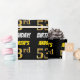 This wrapping paper design features a message like "ANDREW’S 53rd BIRTHDAY!", with the "53rd" having a faux/imitation gold-like colour appearance, and with the name and "BIRTHDAY" in a fun, bold font. The name can be customised, and the background is coloured black. Wrapping paper like this could perhaps be used when wrapping birthday gifts being given to somebody in celebration of their fifty third birthday. [~Z0000203]