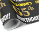 This wrapping paper design features a message like "FIRSTNAME’S 65th BIRTHDAY!", with the "65th" having a faux/imitation gold-like colour appearance, and with the name and "BIRTHDAY" in a fun, bold font. The name can be personalised, and the background is coloured black. Wrapping paper like this could perhaps be used when wrapping birthday gifts being given to somebody in celebration of their sixty fifth birthday. [~Z0000203]