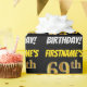 This wrapping paper design features a message like "FIRSTNAME’S 69th BIRTHDAY!", with the "69th" having a faux/imitation gold-like colour appearance, and with the name and "BIRTHDAY" in a fun, bold font. The name can be personalised, and the background is coloured black. Wrapping paper like this could perhaps be used when wrapping birthday gifts being given to somebody in celebration of their sixty ninth birthday. [~Z0000203]