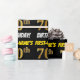 This wrapping paper design features a message like "FIRST-NAME’S 70th BIRTHDAY!", with the "70th" having a faux/imitation gold-like colour appearance, and with the name and "BIRTHDAY" in a fun, bold font. The name is customisable, and the background is coloured black. Wrapping paper like this could perhaps be used when wrapping birthday gifts being given to somebody in celebration of their seventieth birthday. [~Z0000203]