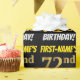 This wrapping paper design features a message like "FIRST-NAME’S 72nd BIRTHDAY!", with the "72nd" having a faux/imitation gold-like colour appearance, and with the name and "BIRTHDAY" in a fun, bold font. The name is customisable, and the background is coloured black. Wrapping paper like this could perhaps be used when wrapping birthday gifts being given to somebody in celebration of their seventy second birthday. [~Z0000203]