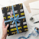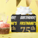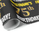 This wrapping paper design features a message like "FIRSTNAME’S 75th BIRTHDAY!", with the "75th" having a faux/imitation gold-like colour appearance, and with the name and "BIRTHDAY" in a fun, bold font. The name can be customised, and the background is coloured black. Wrapping paper like this could perhaps be used when wrapping birthday gifts being given to somebody in celebration of their seventy fifth birthday. [~Z0000203]