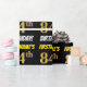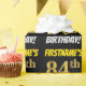 This wrapping paper design features a message like "FIRSTNAME’S 84th BIRTHDAY!", with the "84th" having a faux/imitation gold-like colour appearance, and with the name and "BIRTHDAY" in a fun, bold font. The name can be customised, and the background is coloured black. Wrapping paper like this could perhaps be used when wrapping birthday gifts being given to somebody in celebration of their eighty fourth birthday. [~Z0000203]