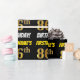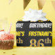 This wrapping paper design features a message like "FIRSTNAME’S 86th BIRTHDAY!", with the "86th" having a faux/imitation gold-like colour appearance, and with the name and "BIRTHDAY" in a fun, bold font. The name can be customised, and the background is coloured black. Wrapping paper like this could perhaps be used when wrapping birthday gifts being given to somebody in celebration of their eighty sixth birthday. [~Z0000203]