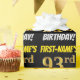 This wrapping paper design features a message like "FIRST-NAME’S 93rd BIRTHDAY!", with the "93rd" having a faux/imitation gold-like colour appearance, and with the name and "BIRTHDAY" in a fun, bold font. The name can be customised, and the background is coloured black. Wrapping paper like this could perhaps be used when wrapping birthday gifts being given to somebody in celebration of their ninety third birthday. [~Z0000203]