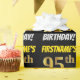 This wrapping paper design features a message like "FIRSTNAME’S 95th BIRTHDAY!", with the "95th" having a faux/imitation gold-like colour appearance, and with the name and "BIRTHDAY" in a fun, bold font. The name can be personalised, and the background is coloured black. Wrapping paper like this could perhaps be used when wrapping birthday gifts being given to somebody in celebration of their ninety fifth birthday. [~Z0000203]