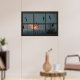 This faux window poster features a realistic view of a flock of birds at dusk in the distance. The 6 paneled black wooden window is designed to look like a real window in your wall. Perfect for the bathroom, office, hallway, basement or anywhere you wished you had a window.