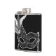 Beautiful silver, white and black feather mask Mardi Gras flask. You can choose the background colour, and add text to the front and back.