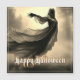 A gloomy, floating black ghost with an ethereal form, surrounded by dense clouds of mist, hovering menacingly above the ground in a dark, hellish landscape with an eerie atmosphere.