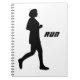 Black silhouette painting of a female runner with the word RUN, is printed on custom notebooks. This painting was inspired by a cross country runner. Purchase at PositiveAffirmation on Zazzle.
