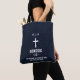 Dark blue and black flecks random scatter pattern Christian tote bag, featuring a cross. You can customise the text, including your own initials (or name if you prefer), your favourite book of the Bible, the chapter and verse, and you can include a short quote from the verse - or simply delete the quotation if you like to keep the design as just a simple book-chapter-verse style.
