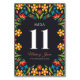 Black Floral Colorful Botanical Spanish Wedding Table Number