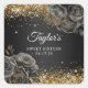 Black Floral Glam Gold Glitter Sweet Sixteen Square Sticker