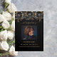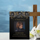 An elegant tri-fold program. A classic black background, a black and golden florals and space for a photo. Personalise and add name, dates and your text.