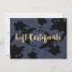 Coordinates with the Black Floral Gold Text Makeup Artist, Nail Salon, and Beauty Blue Business Card Templates by 1201AM. This elegant gift certificate template features a faux metallic gold foil effect with a dark, midnight blue and black floral pattern in the background for added depth. Perfect for salons, cosmetologists, makeup artists, boutiques and more.