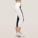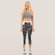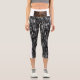 This description emphasizes the unique design on a black background, the comfort and functionality of the capris, and their ability to blend seamlessly into both active and casual settings.