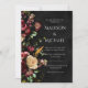 Beautiful bouquet of burgundy & cream flowers mixed with greens bordering modern fonts done in white on a rustic black faux background were used to create this modern wedding invitation. Perfect for any season wedding. Coordinating black on reverse side. Absolutely stunning!