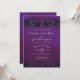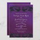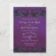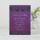 Black floral lace like design and deep purple wedding invitation bold and elegant with hand script style font, text in silver.
