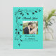 This "Thank You" invitation card with black flowers and leaves on vines—a floral corner frame on the front and the flower vine pattern on the back. A turquoise colour #40E0D0 has been added for the background colour. To change this colour, open up the "Printed Background Colour". Then click on "Advance" to the Hex Colour. Just type in the number or click on a shade of pink, yellow, or any other colour. Resize, rotate and other editing available for this flower vine image. Replace the photo with your own.