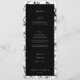 Elegant black vintage garden floral frame, menu and thank you card. Features, white typography with menu on front and thank you message on back.
