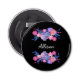 Bottle opener featuring a black background and flower design to accent the custom monogram