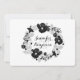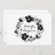 Beautiful and romantic vintage wedding invitation with black flowers wreath and grey leaves.