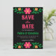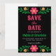Celebrate your love with this elegant and festive save the date card! Featuring a beautiful floral design inspired by traditional Mexican papel picado, this card is perfect for a destination wedding or a fiesta-themed celebration. The black background creates a sophisticated and modern look, while the vibrant colours and intricate details add a touch of traditional charm.