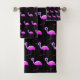 BLACK FLURO FLAMINGO PATTERN BATHROOM TOWEL SET