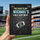 This chalkboard style football themed first birthday party invitation sets the tone for a playful game day celebration. Fun illustrated plays and a bold football graphic make it great for football birthday celebration invitations or any sports themed first birthday party. Add your child’s name, time, and kick off details to create a memorable keepsake. Personalize yours today.