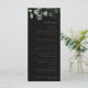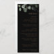 This black formal minimal eucalyptus wedding menu card is perfect to compliment a rustic wedding. The design features watercolor green eucalyptus foliage in a black background.